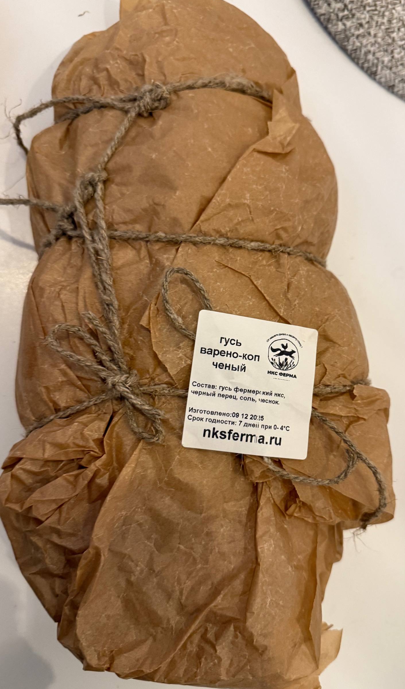 Состав: гусь породы Линда фермы нкс, экстракт дрожжей, соль нитритная, экстракт душистого перца, экстракт черного перца.